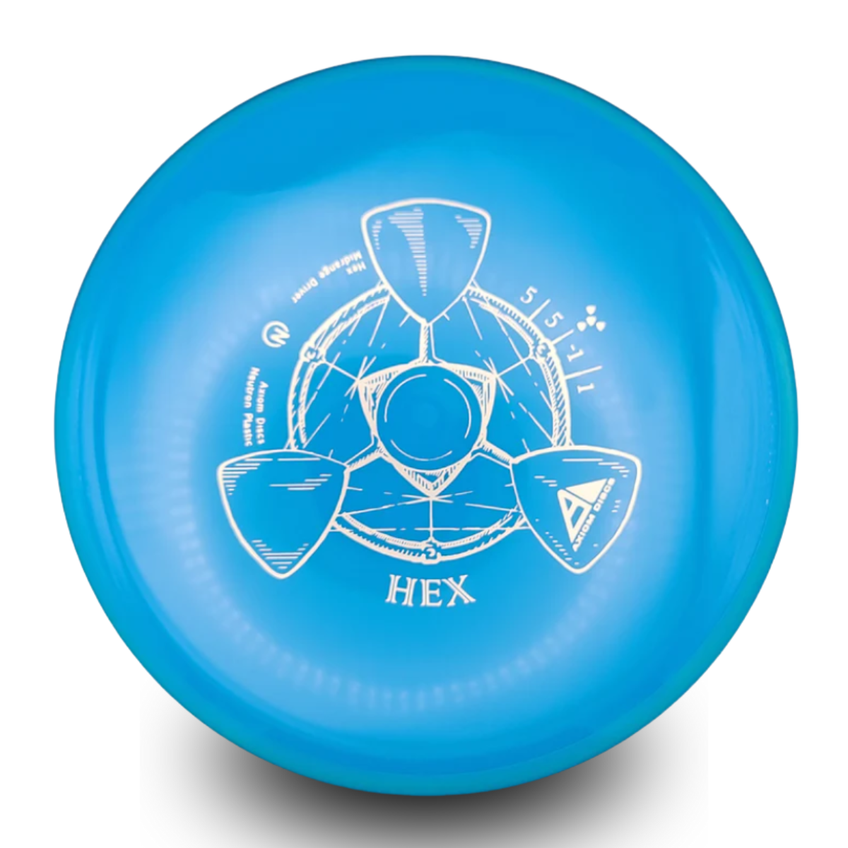 Mesmerizingly straight, with flight numbers of 5/5/-1/1, the Hex will find a place in anyone’s bag as a versatile and reliably straight midrange. At the highest arm speeds, the Hex will produce slightly understable lines from flat, but the 1 fade keeps it from flipping over completely. For lower arm speeds, the Hex has enough turn to make shaping lines a breeze. If you are looking for control in the woods, or simply a versatile line shaper, the Hex is the midrange for you.Mesmerizingly straight, with flight numbers of 5/5/-1/1, the Hex will find a place in anyone’s bag as a versatile and reliably straight midrange. At the highest arm speeds, the Hex will produce slightly understable lines from flat, but the 1 fade keeps it from flipping over completely. For lower arm speeds, the Hex has enough turn to make shaping lines a breeze. If you are looking for control in the woods, or simply a versatile line shaper, the Hex is the midrange for you.