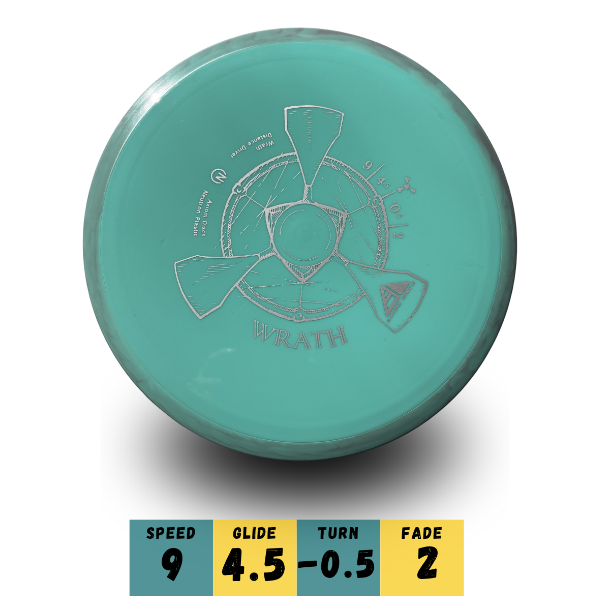 The Wrath is a stable-overstable distance driver. The Wrath is a more turn-resistant complement to the Insanity. Just as the Insanity mimics a broken-in Inertia, the Wrath brings a worn-in flavor to the beloved Tesla flight profile.