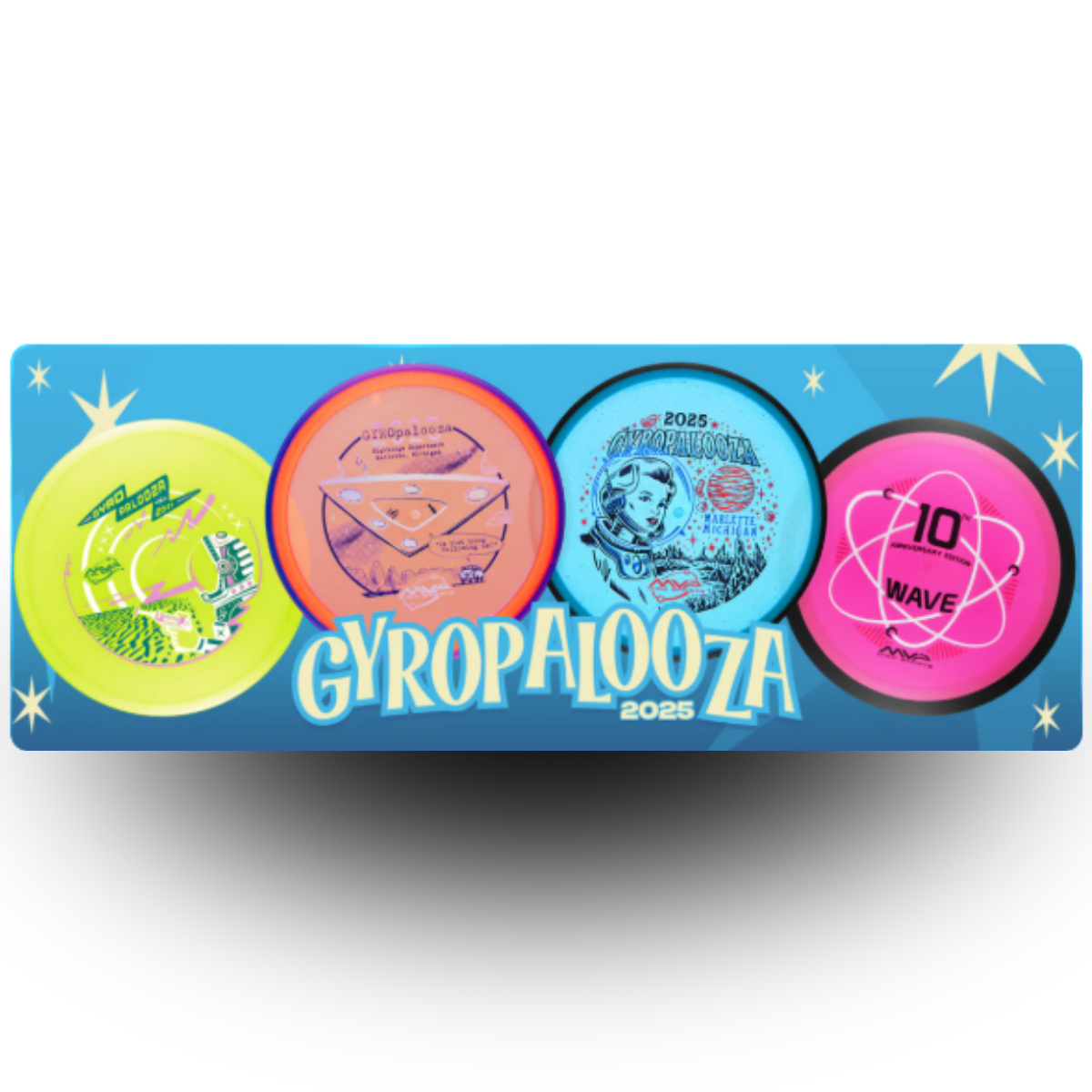 As we do every year, we’ve packed the GYROpalooza Box with tons of value, ensuring you get exceptional bang for your buck. Each box includes 11 discs: 4 GYROpalooza Special Edition discs with multi-foil stamps, 2 R2 Neutron discs, and 5 Lab Second discs. Let’s take a closer look at the GYROpalooza Special Edition discs, and happy hunting for those Golden Tickets!