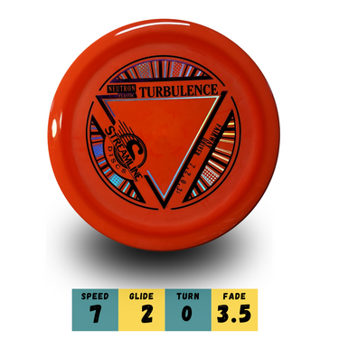 Le Turbulence est conçu avec un plateau de vol volontairement concave, il offre une prise en main exceptionnelle, ce qui permet des lancers extrêmement propres et résistants au torque, aussi bien en revers qu’en coup droit. Son design unique offre également moins de glisse, une meilleure tolérance à l’angle de nez pour les spike hyzers, et un rebond (skip) atténué – ce qui en fait un fairway driver très confortable, idéal pour tous les lancers de contrôle sur le fairway.